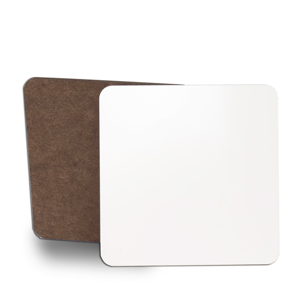 Dřevovláknitý lakovaný podtácek s možností navržení potisku na vrchní stranu podložky, která je na rozdíl od podložky korkové čistě bílá. Mezi její výhody patří především vysoká odolnost proti tepelnému namáhání a snadná údržba. Nepostradatelné příslušenství ke sklenicím, půllitrům či hrníčkům. Vhodné jako originální dárek pro všechny příležitosti, například s fotografií domácího mazlíčka nebo s potiskem vtipného textu, popř. jako reklamní předmět.