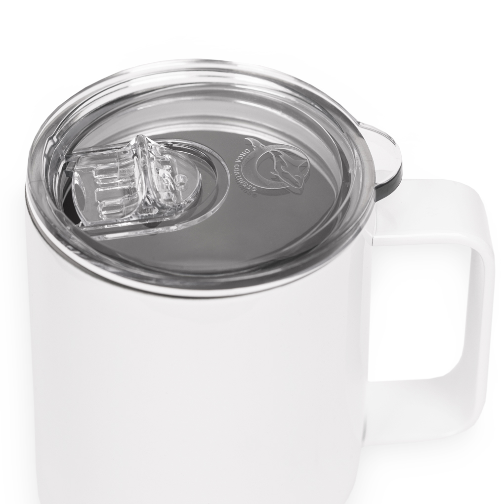 V posuvném plastovém víčku je otvor na vložení brčka. Hrnek není vybaven těsněním, při naklonění může dojít k vylití nápoje.