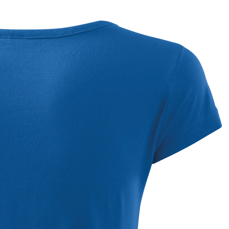 Klasické bavlněné tričko se střední gramáží. Tričko má projmutý střih zvýrazňující ženskou siluetu, rukávy kratší délky a kulatý výstřih ze žebrovaného úpletu. Vyrobeno z kvalitní 100% bavlny. Výborný poměr kvality a ceny.